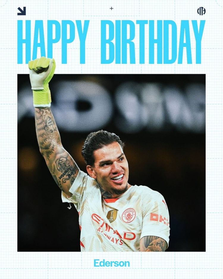 曼城官方社媒曬出埃德森的生日海報,配文:“祝你生日快樂(lè ),埃德森!”
