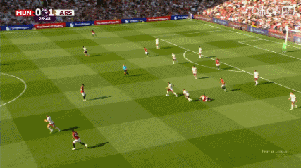 08月18日訊 曼聯(lián)vs阿森納第29分鐘,阿森納一波攻勢,馬丁內利起球轉移,這球太大了。