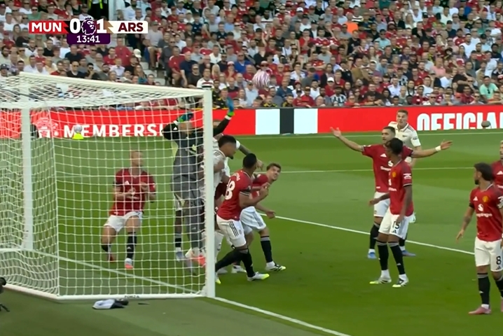 08月17日訊 英超首輪焦點(diǎn)戰,曼聯(lián)對陣阿森納。第13分鐘,賴(lài)斯角球開(kāi)出,門(mén)前門(mén)將巴因德?tīng)栆苿?dòng)受限,卡拉菲奧里搶到機會(huì )近距離頭球破門(mén),阿森納先進(jìn)一球,1-0領(lǐng)先曼聯(lián)。