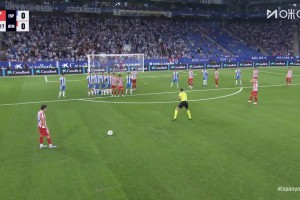 第37分鐘,馬競獲得前場(chǎng)左側肋部位置的定位球機會(huì ),阿爾瓦雷斯主罰選擇直接打門(mén),皮球繞過(guò)人墻劃出美妙弧線(xiàn)直入近角,馬競1-0領(lǐng)先↓
