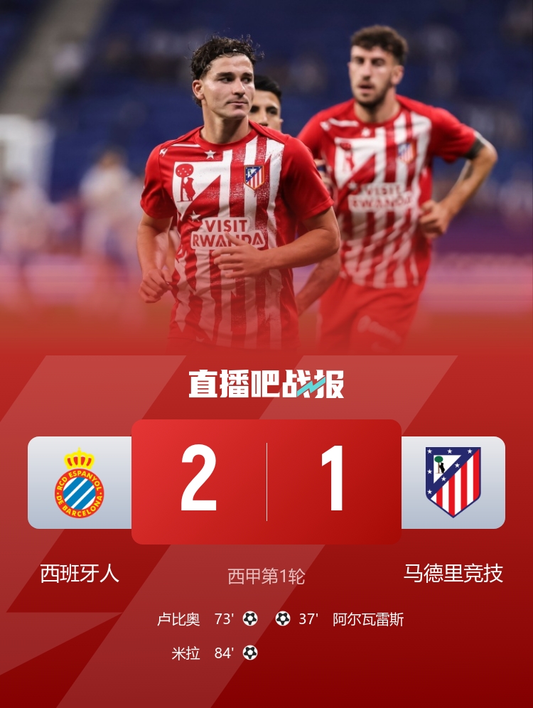 8月18日訊 西甲第1輪,西班牙人坐鎮主場(chǎng)RCDE體育場(chǎng)迎戰馬德里競技。上半場(chǎng),阿爾瓦雷斯任意球圓月彎刀破門(mén)。易邊再戰,阿爾瓦雷斯中柱,盧比奧扳平,米拉頭槌回頭望月反超比分。最終馬競1-2客負西班牙人。