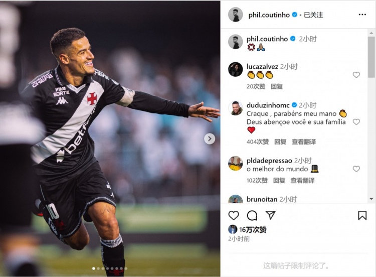 庫蒂尼奧社媒曬出多張賽場(chǎng)照片,慶祝球隊取勝,其中包括與內馬爾的賽場(chǎng)同框照。