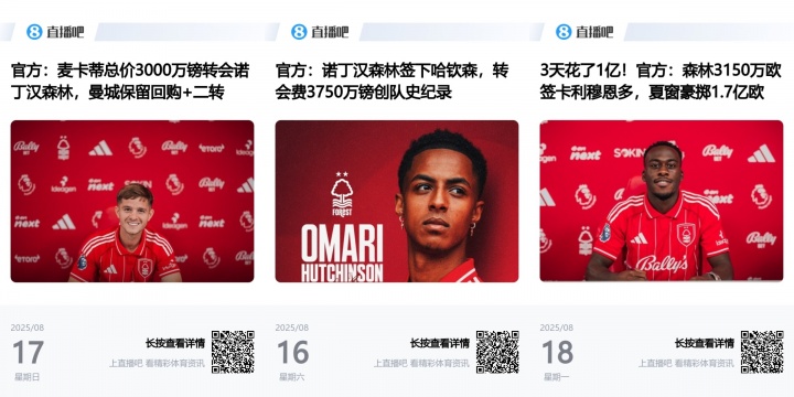 此前諾丁漢森林在8月16日已經(jīng)官宣簽下哈欽森和麥卡蒂,加上卡利穆恩多,森林在3天內花費了超過(guò)1億歐元。今年夏窗,諾丁漢森林在轉會(huì )市場(chǎng)上已經(jīng)投入超過(guò)1.7億歐元。