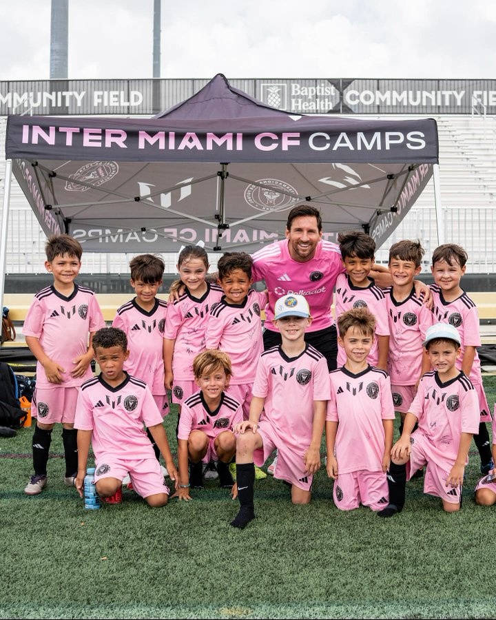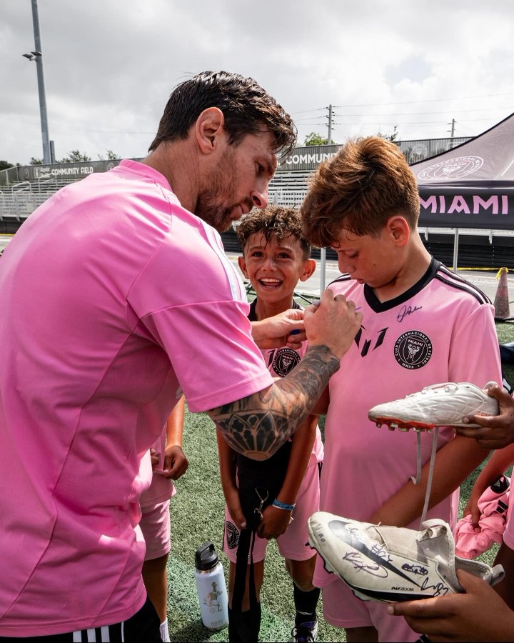 梅西出席邁阿密?chē)H青訓學(xué)院的活動(dòng),與小球員互動(dòng),為他們簽名并合影。
