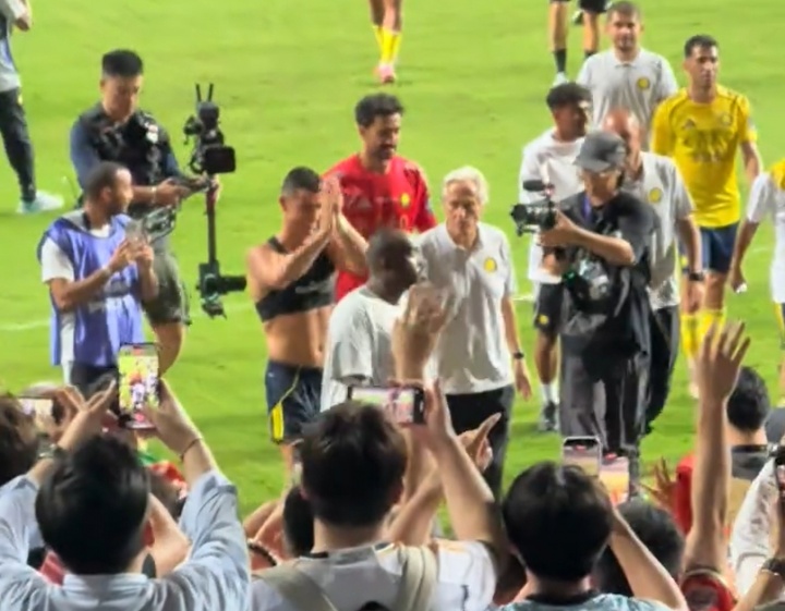 08月19日訊 沙特超級杯半決賽,利雅得勝利2-1戰勝吉達聯(lián)合,率先晉級決賽。球迷實(shí)拍視頻顯示,賽后C羅帶領(lǐng)利雅得勝利全隊向球迷謝場(chǎng),并將自己的球衣送給了看臺上的球迷。