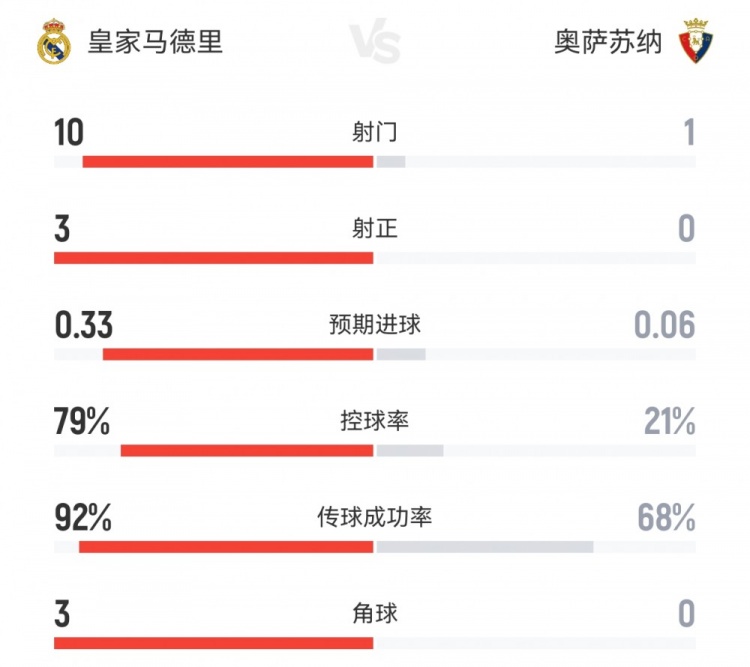 播吧8月20日訊 西甲首輪,皇馬半場(chǎng)0-0奧薩蘇納。雙方半場(chǎng)重點(diǎn)數據對比如下↓(主隊皇馬在前)