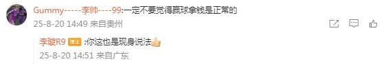 隨后,李帥本人留言評論道:“一定不要覺(jué)得贏(yíng)球拿錢(qián)是正常的?!?/p>
