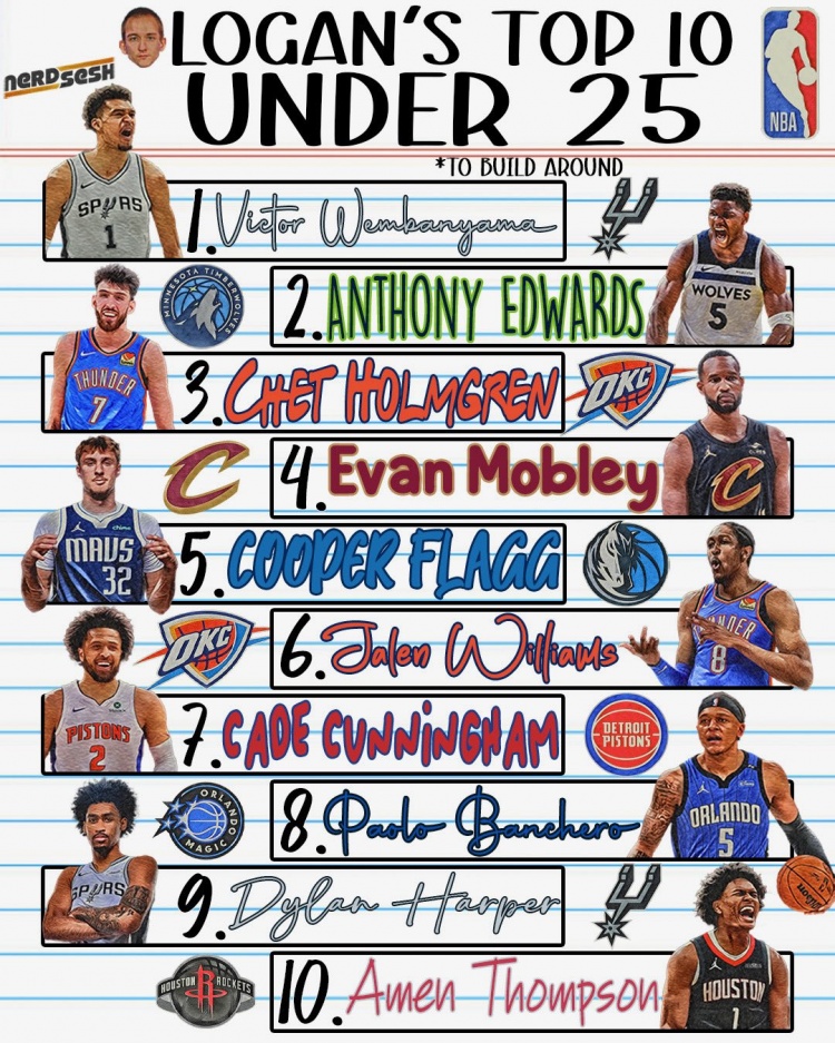 9月1日訊 近日,兩名美國記者Logan?Camden和Carson?Breber分別評選出了自己心中25歲以下的top10球員。