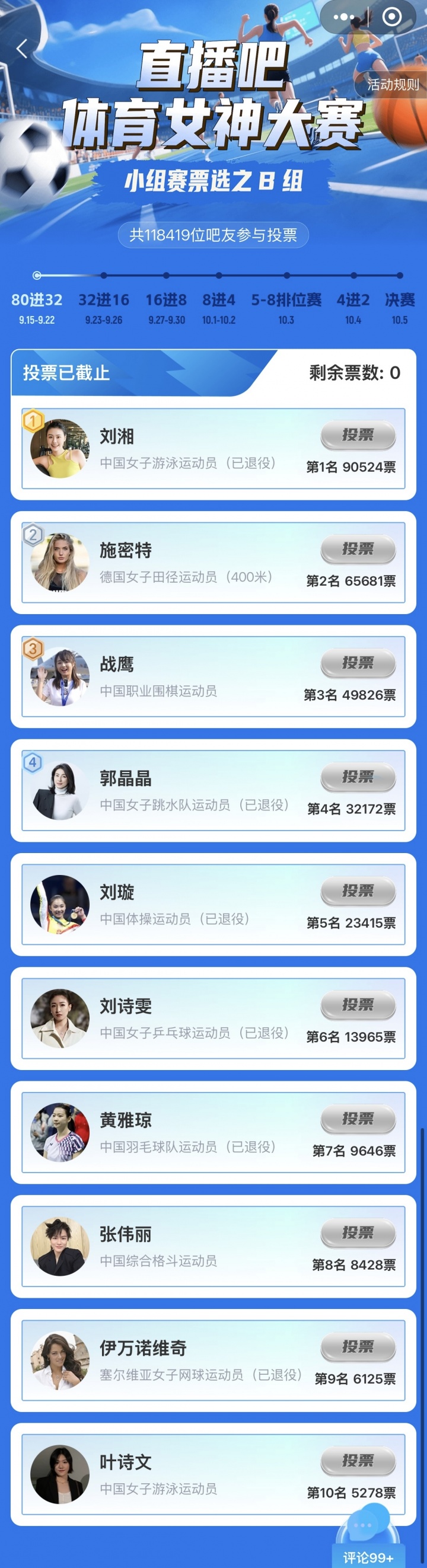 小組賽將按組別順序分八天進(jìn)行,每日吧友票選出的前四名,將晉級32強總決賽。
