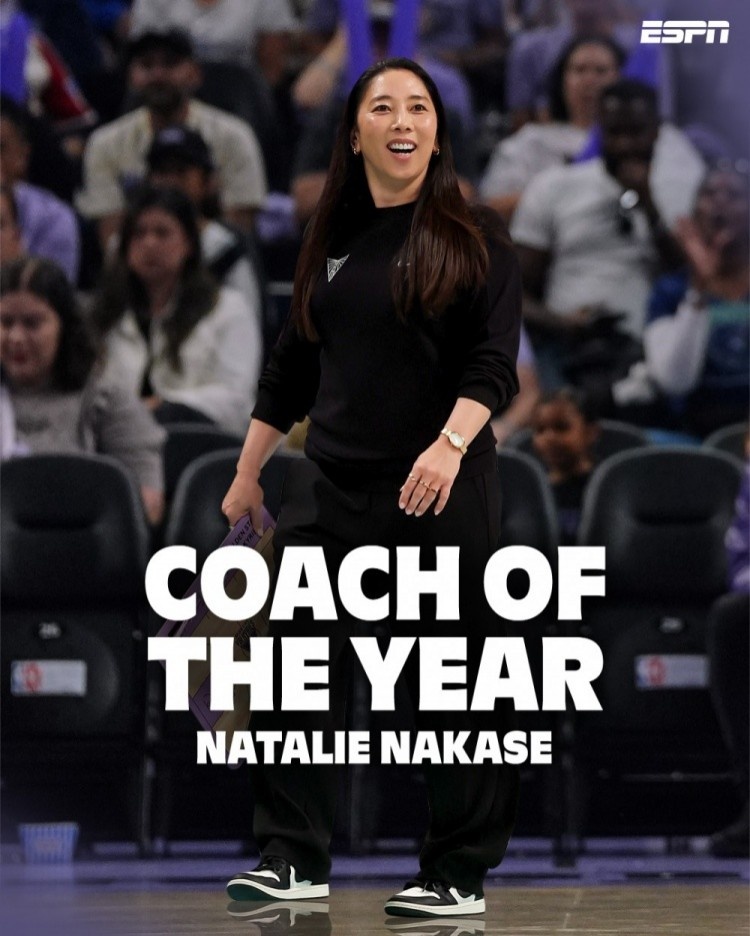 我前幾天看到了特米(法格本勒)的一段引述,她就是這么說(shuō)的,我非常喜歡。這就是現實(shí)——通過(guò)擴軍,用那些未受保護的球員來(lái)組建一支球隊。但我覺(jué)得奧赫瑪實(shí)際上把這看作是一件積極的事,或者說(shuō)一項挑戰,而且她打造了一套全員都憋著(zhù)一股勁的陣容。所以你看到這些球員,她們既要向放走她們的球隊證明自己……也擅長(cháng)做好那些小事,那些不被重視但實(shí)際上能幫助球隊贏(yíng)下比賽的事情。然后再加上一位同樣充滿(mǎn)斗志的年度最佳教練,她強調防守和強硬——這就把一切組合成了一片充滿(mǎn)機遇的樂(lè )土。于是就有了:凱拉-索頓,全明星;維羅妮卡-伯頓,進(jìn)步最快球員;珍妮爾-薩隆,最佳新秀。我覺(jué)得這些個(gè)人成就恰恰說(shuō)明了我們這個(gè)團隊正在建立的文化……就好像在說(shuō):如果你想讓質(zhì)疑者們閉嘴并贏(yíng)得勝利,那就來(lái)灣區吧。(無(wú)違規招募。)