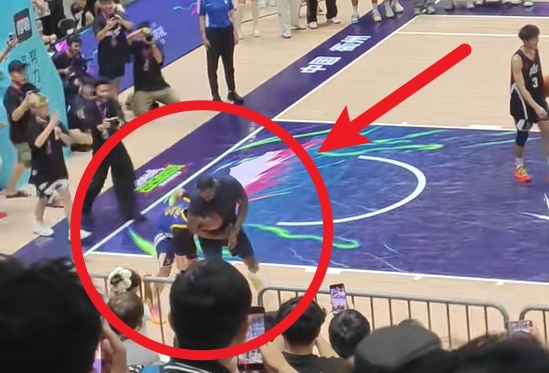 活動(dòng)現場(chǎng),中國街球球員程鑫凱穿著(zhù)普爾的球衣防守追夢(mèng)被頂翻在地,隨后追夢(mèng)將“普爾”鎖喉并拉拽了五米之遠。