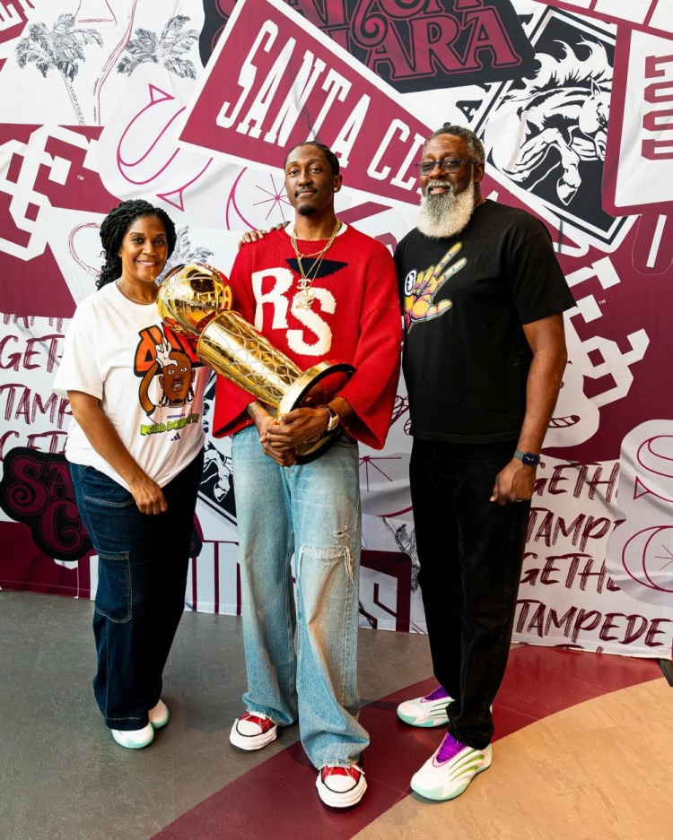 9月22日訊 雷霆球員杰倫-威廉姆斯帶著(zhù)總冠軍獎杯回到了母校圣克拉拉大學(xué),在那他得到了全校師生的熱烈歡迎。