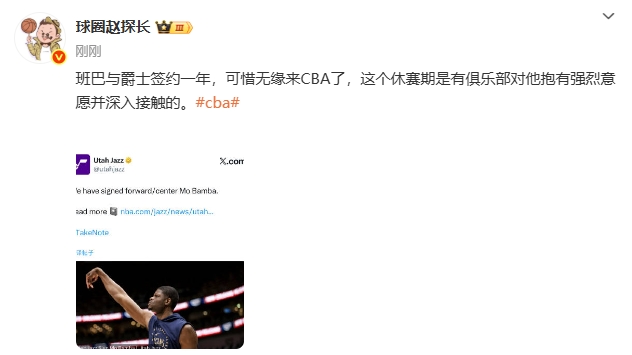 班巴與爵士簽約一年,可惜無(wú)緣來(lái)CBA了,這個(gè)休賽期是有俱樂(lè )部對他抱有強烈意愿并深入接觸的。