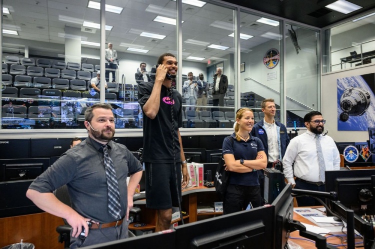 8月31日訊 美國宇航局約翰遜航天中心官方社媒賬號曬出了文班亞馬參觀(guān)的照片,并配文寫(xiě)到:“從球場(chǎng)到宇宙,文班亞馬無(wú)處不閃光 ?????!?/p>