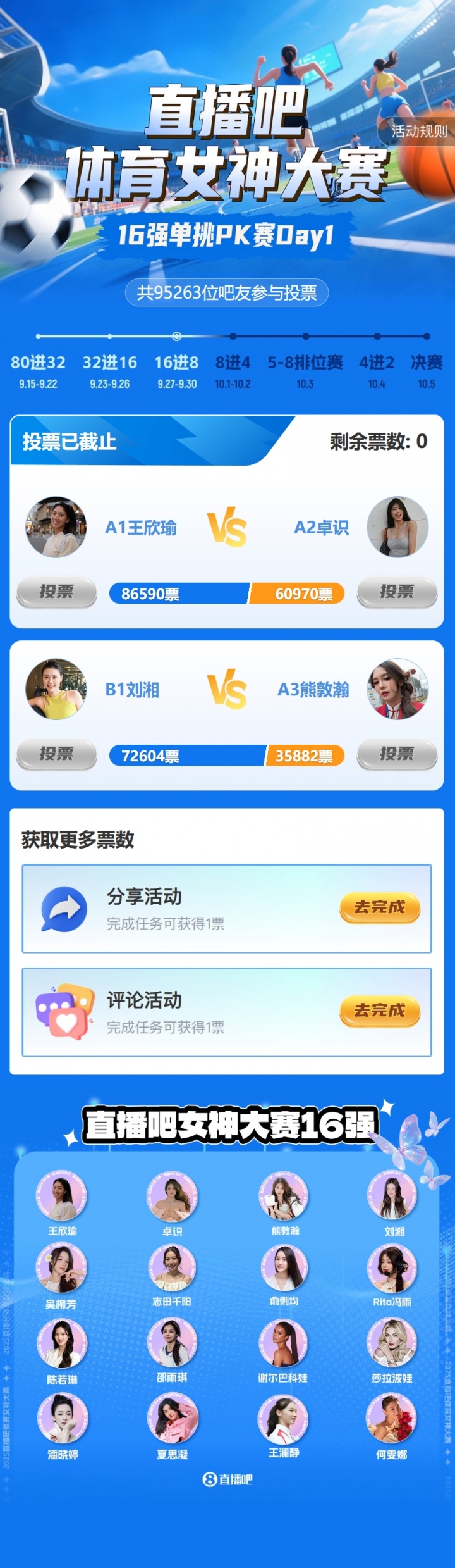 2025年『體育女神大賽』昨日進(jìn)入16強單挑PK賽階段,淘汰賽Day1結果如下: