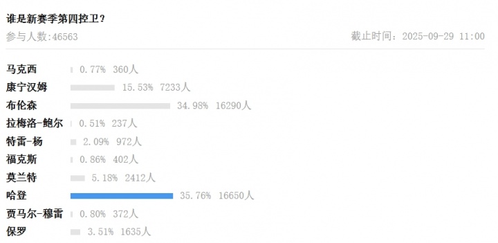 『吧友評選』??NBA新賽季第四控衛:詹姆斯-哈登!