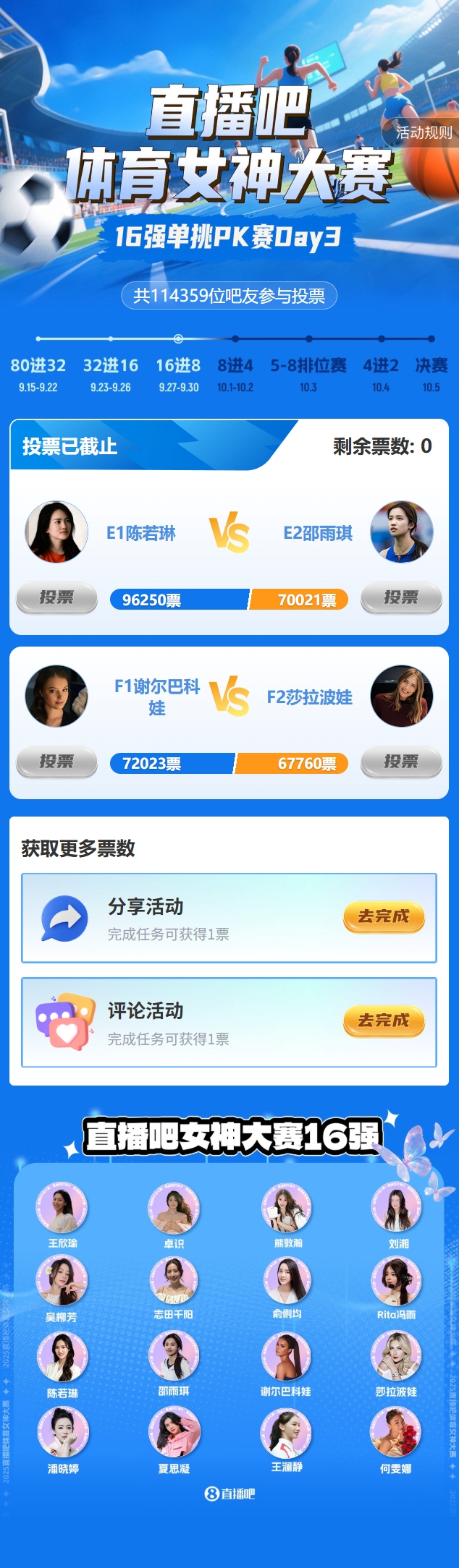 2025年『體育女神大賽』昨日結束了16強單挑PK賽Day3的爭奪,Day3具體結果如下: