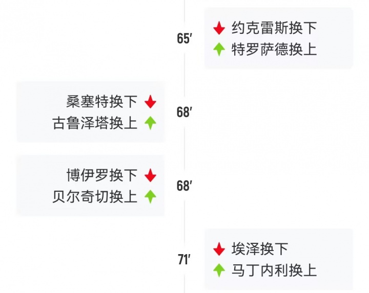 塔帥換人如神!6分鐘內換上小馬丁、特羅薩德,二人15分鐘互傳射