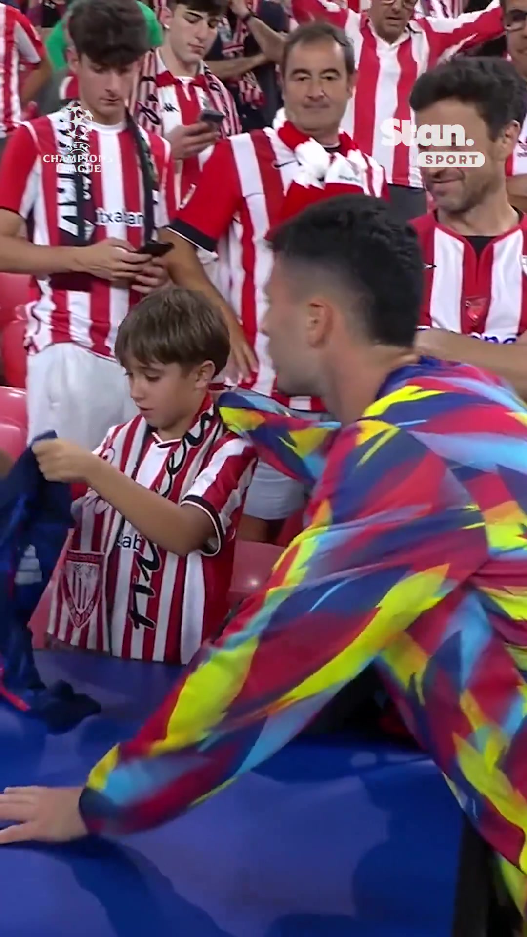 暖心大哥哥??馬丁內利賽后將球衣送給畢巴小球迷,與之親切合影