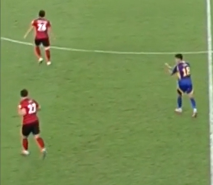 比賽第96分鐘,蓉城中衛李揚爭搶高空球時(shí)被打進(jìn)絕殺的蔚山球員許律拉拽球衣,主裁吹犯規給了蓉城后場(chǎng)任意球,李揚開(kāi)球直接大力踢出遠端邊線(xiàn),許律回頭向他伸出大拇指+鼓掌。