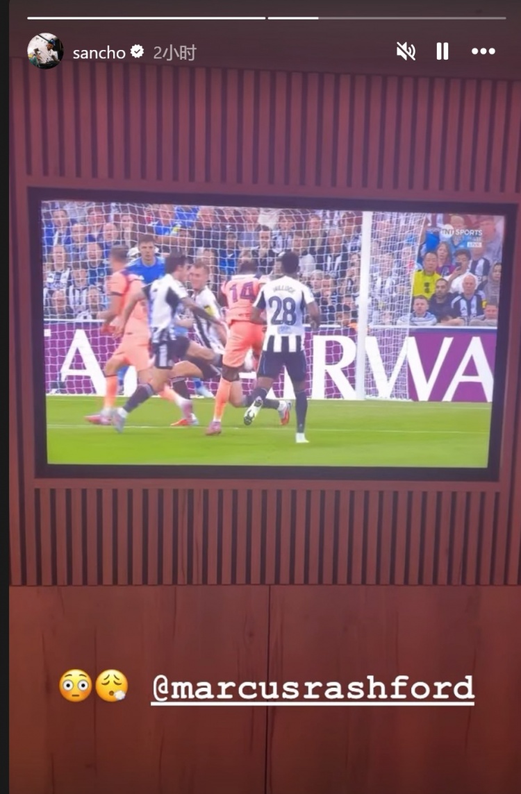 拉什福德的前隊友桑喬也在關(guān)注這場(chǎng)比賽,并在社媒曬出拉什福德的進(jìn)球視頻。