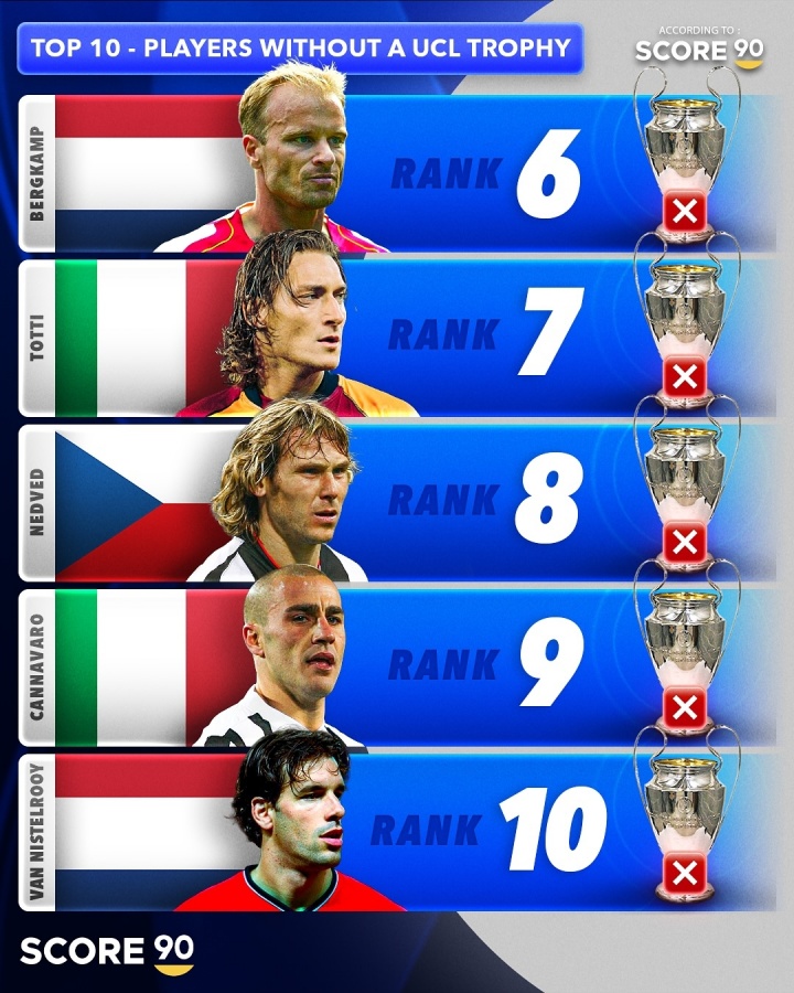 無(wú)歐冠球員TOP10:大羅居首 姆巴佩、伊布、阿圭羅、凱恩列2至5位