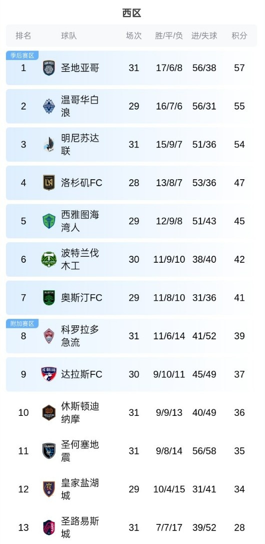 洛杉磯FC擁有孫興慜、洛里等球星,球隊在本賽季28輪比賽過(guò)后以47分位居西區第4位。