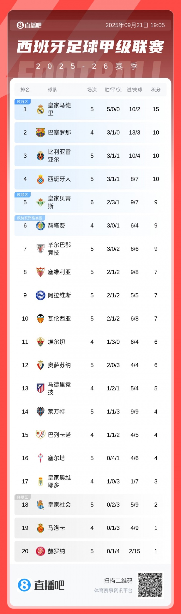 09月21日訊 西甲第5輪,赫羅納主場(chǎng)0-4慘敗于萊萬(wàn)特,繼續穩居西甲墊底位置。本賽季西甲前5輪,赫羅納僅取得1平4負,排名西甲倒數第一。
