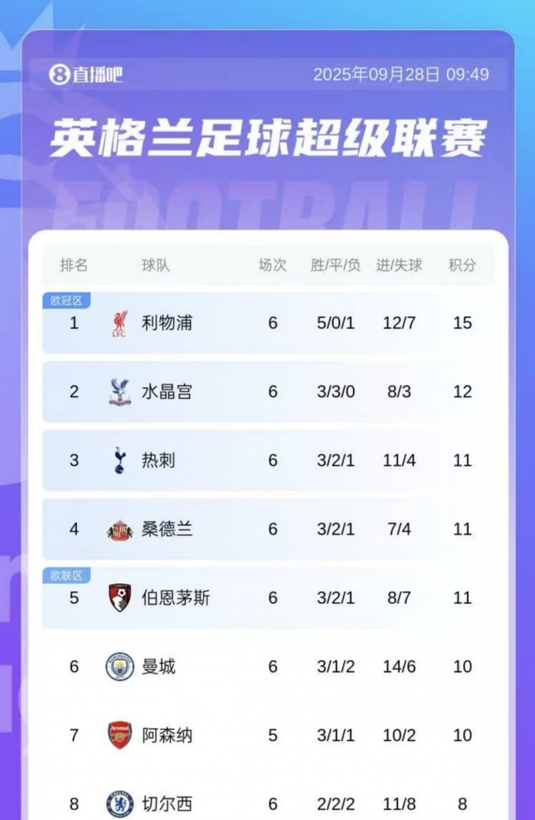 據Opta數據統計,這是自2001年3月以來(lái),球隊首次在聯(lián)賽進(jìn)行五輪或更多輪次后躋身積分榜前四。