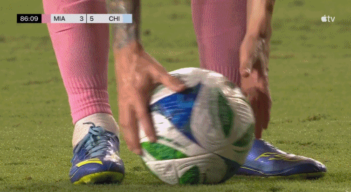 比賽第87分鐘,邁阿密?chē)H獲得前場(chǎng)任意球,梅西罰任意球前與裁判因擺球位置起爭執,梅西數次調整,期間頻頻向裁判揮手,并跟裁判說(shuō)著(zhù)什么,隨后還指指自己的眼睛。