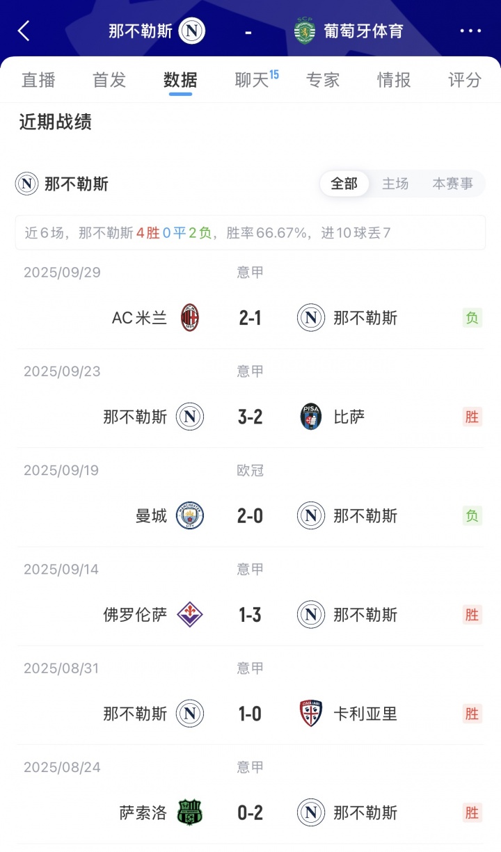 那不勒斯上一輪歐冠,0-2不敵曼城;葡萄牙體育上一輪歐冠,4-1戰勝阿拉木圖凱拉特!